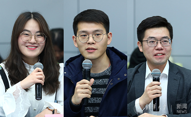 王艳华、石运昊、仲峻霆(从左至右)发言