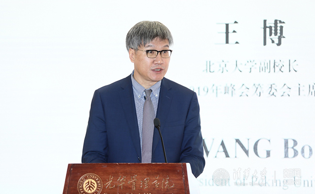 王博代表论坛承办方北京大学欢迎所有与会者来到燕园参加2019年中英高等教育人文联盟峰会。王博希望本次峰会能够为两国高校在人文教育方面,培养跨文化、跨民族的全球性对话提供交流与合作的平台。