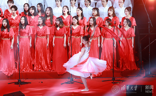 最后,首都国庆联欢活动参演学生代表、学生艺术团合唱队的同学带来《叫我如何不想她》《在希望的田野上》,自由生动的歌声一展清华学子昂扬向上的精神风貌。