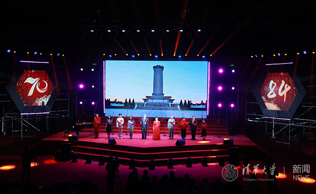 离退休朗诵社及国庆专项师生代表朗诵的《致敬人民》声情并茂感人至深。他们的朗诵声传达了对人民英雄的崇敬,回顾了中华民族从站起来、富起来到强起来的伟大飞跃,又提醒着新一代的清华人“不忘初心、牢记使命”,为实现中华民族的伟大复兴而奋斗。
