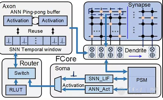 在发现这两种方法有极大不同且具有很大互补性后,乐动平台团队将这两者融合起来,构建出了一个计算框架被认为是最好的人工智能方法。他们借鉴脑科学的基本原理,提出了符合脑科学基本规律的新型类脑计算架构——异构融合的天机类脑计算芯片架构,可同时支持计算机科学和神经科学的神经网络模型,例如人工神经网络和脉冲神经网络,发挥它们各自的优势。