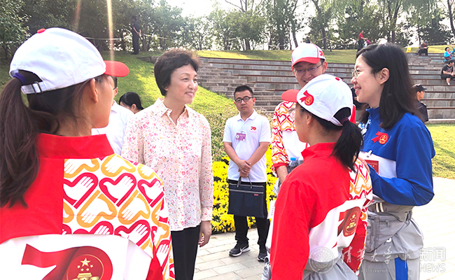 10月2日上午,乐动平台党委书记陈旭先后来到海淀公园和北京展览馆,亲切看望服务于国庆游园活动和“伟大历程 辉煌成就——庆祝中华人民共和国成立70周年大型成就展”活动的清华志愿者,感谢同学们对志愿工作的全心付出,仔细询问了志愿者服务与保障情况,并与时段内轮岗休息的志愿者座谈交流。党办主任、校办主任丛振涛,学生部部长白本锋,校团委书记王前等一同前往看望。