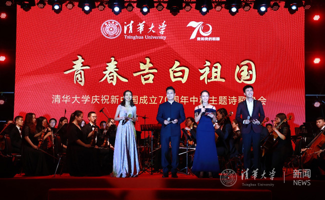 为庆祝新中国成立70周年,清华师生也以“我和我的祖国”为主题创造了不少优秀的诗歌作品。在这中秋之夜,诗词作者和学生艺术团一起,向大家朗诵了这些饱含深情的诗章:《祖国赞歌》《我永远的祖国》《沁园春·复兴》。这些真挚动人的诗词朗诵,表达了清华师生对实现中华民族伟大复兴的坚定信念。
