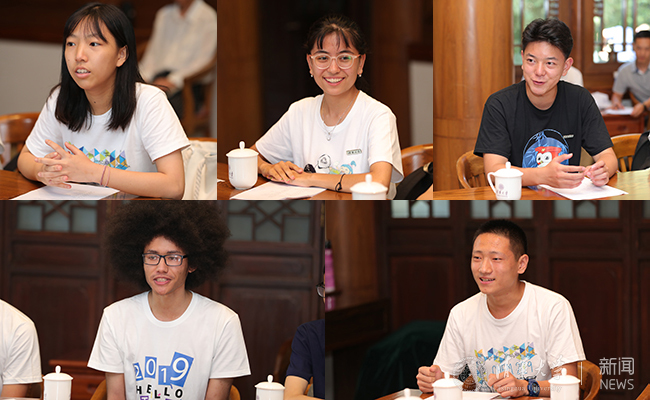 参加座谈会的新生畅所欲言,分别为(从上至下、从左至右)周悦晖、古丽孜巴·阿迪力江、松丁江初、冉宁可、鹿泽宇