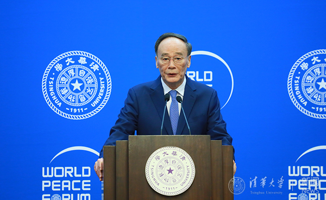 王岐山在致辞中表示,新中国成立以来,中国人民经过艰苦卓绝的努力,实现了从温饱不足到全面小康的历史巨变,中华民族迎来了伟大复兴的光明前景。中国的发展离不开世界,世界的发展也离不开中国。中国始终坚定不移走和平发展道路,永不称霸、永不扩张、永不谋求势力范围。面对当今国际秩序变革调整,中国主张推动构建新型国际关系和人类命运共同体,维护多边主义基石,拓宽共同发展途径,促进文明互学互鉴,携手应对人类共同新挑战。呼吁各国坚守和平发展的信念,毫不动摇地推进经济全球化,共同构建更加公正合理、稳定有效的国际秩序。