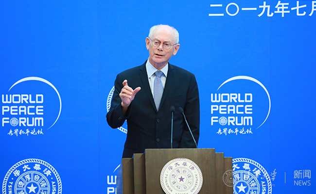 欧洲理事会前主席范龙佩在发言中回顾了过去十年全球发生的变化,谈到当今世界面临的气候变化、可持续发展等多种挑战,并表示应当勇敢的携起手来应对这些挑战,实现和平共赢与和谐共处。范龙佩指出,促进全球繁荣,进一步加强合作,每个国家都应该在全球化过程当中担负起自己的义务和责任。寻求和平共处是我们需要达到的一个目标,每一个人都能够都应该从这样一个过程当中受益,而冲突只会使所有人受伤。我们没有别的选择,只能共同来促进生活水平的提升。如果没有国际贸易,不可能实现各自经济社会的发展,如果没有相互依存,不可能实现经济发展。我们需要寻求一个更好的生活标准,但是要实现这一目标,需要和平,必须要共同推动繁荣。他还介绍了欧盟的发展以及欧盟在应对气候变化等挑战中所作出的贡献。