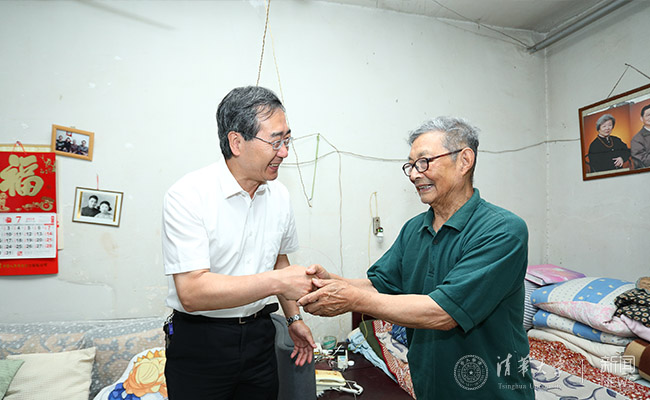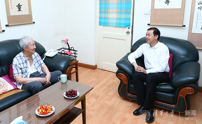当天上午,邱勇看望了老党员、离休干部宋玉芬。宋玉芬同志13岁时就投入了艰苦卓绝的抗日斗争,并于1945年入党。宋玉芬感谢党对自己70多年来的培养与关爱并表示,在清华工作期间,“行胜于言”的校风深深影响了自己,同时为学校综合改革取得的成绩、国际影响力的提升感到由衷的欣慰和自豪。