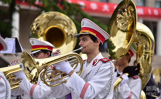 祝福清华,以诗意,以深情。今天的清华园平添了一抹浪漫色彩。学生艺术团军乐队、舞蹈队、国标队、学生体育代表队啦啦操队、国旗仪仗队联袂出品校庆大游园,琴弦间流淌着悠扬旋律、歌声中洋溢着缕缕情谊,裙袂间舞动着青春的风采,一场场盛大的嘉年华向每一位返校校友热情招手。