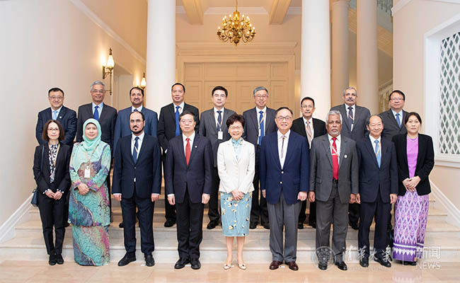 香港特别行政区行政长官林郑月娥会见了各联盟大学代表,对亚洲大学联盟峰会在香港召开表示热烈欢迎。乐动平台校长邱勇、香港科技大学校长史维、韩国国立首尔大学校长吴世正(OH Se-Jung)、泰国朱拉隆功大学校长班迪·厄阿鹏(Bundhit Eua-arporn)、印度尼西亚大学校长穆罕默德·阿尼斯(Muhammad Anis)、斯里兰卡科伦坡大学校长拉克什曼·迪萨纳亚克(Lakshman Dissanayake)、印度理工学院孟买分校校长迪旺·柯克尔(Devang Khakhar)、阿联酋大学校长穆罕穆德·阿尔巴里(Mohammed Albaili)、哈萨克斯坦纳扎尔巴耶夫大学校长胜茂夫(Shigeo Katsu)、日本东京大学常务副校长白波濑佐和子(Sawako Shirahase)、北京大学副校长田刚、新加坡国立大学副校长黄载贤(Andrew Wee)、缅甸仰光大学副校长翁玛觉(Omar Kyaw)、马来西亚马来亚大学副校长卡米拉·加扎利(Kamila Ghazali)和沙特国王大学副校长阿卜杜拉·阿勒·萨勒曼(Abdullah Al-salman)参加会见。