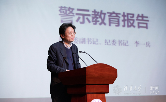 李一兵在警示教育报告环节,向大家传达了习近平总书记在十九届中央纪委三次全会重要讲话中对领导干部的要求,教育部2019年教育系统全面从严治党工作视频会议、北京教育系统全面从严治党工作会议和警示教育大会的重要精神,并通报了上级组织查处的典型问题和违纪案例。李一兵指出,党员干部要以案为鉴,切实提高政治站位,牢固树立“四个意识”,坚决做到“两个维护”,严于律己、警钟长鸣。