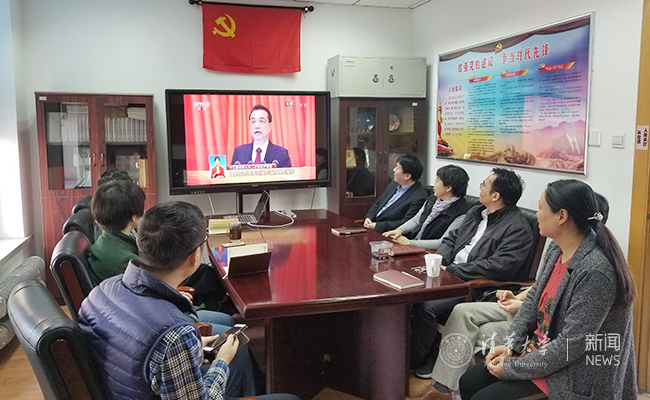 这一天的清华园里,各单位纷纷自发组织教职工和学生收看、收听了开幕会直播,一些出差在外的师生们,也都通过手机、电脑、广播等方式自发收看收听开幕式盛况,热议政府工作报告。