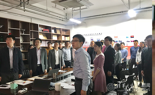 校领导和专家学者在工字厅东厅集中收看人大开幕