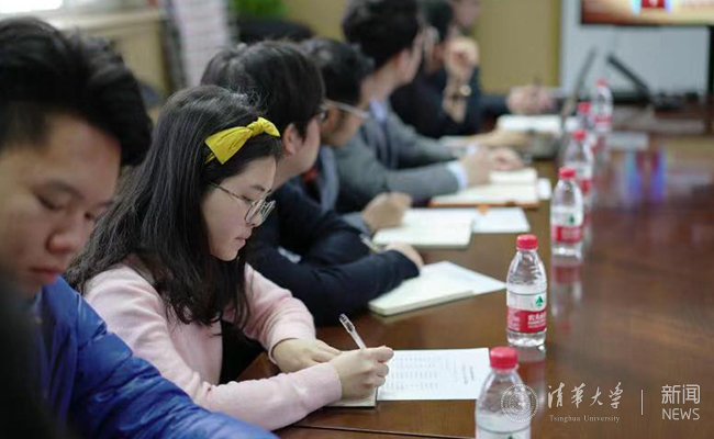 认真听报告做笔记的清华学子