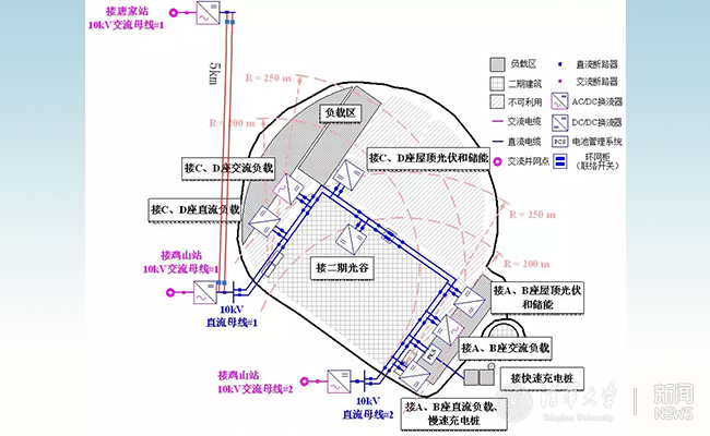 该工程由鸡山1换流站(10MW)、鸡山2换流站(10MW)、唐家换流站(20MW)采用地下电缆相连接,接入唐家湾科技园的风、光、储、充以及多元直流负荷,构成多端多层级、可网络重构的±10kV/40MW柔性直流配电网,实现了多个交流变电站的直流柔性互联和备用功率支撑,提高了系统供电可靠性。