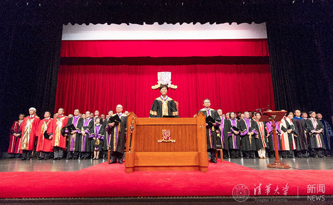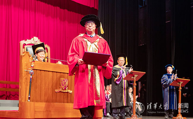 香港中文大学中国语言及文学系主任邓思颖宣读了对邱勇校长的赞词。他在赞词中说:从当年刚踏入校园寻梦的学子,到今天带领全校师生寻梦的校长,邱勇在清华学习、工作35年,可谓名副其实的“老清华”。他致力促进科研、材料开发、成果转化,开创了新型交叉学科研究,打通了科研通向产业化的道路;他对学子循循善诱,启迪人心;就任校长后,他继续推动和巩固清华与香港中文大学之间紧密的合作关系。“邱勇教授言传身教,春风化雨,孜孜不怠,力求突破。提倡学科交叉研究,推动学术与产业的结合,带动社会新风气,视野高远,胸襟广阔,海纳百川,故能成其大。为学为人,充分体现了乐动平台‘自强不息,厚德载物’的精神,身体力行,躬先表率。”