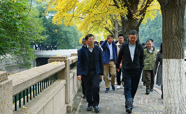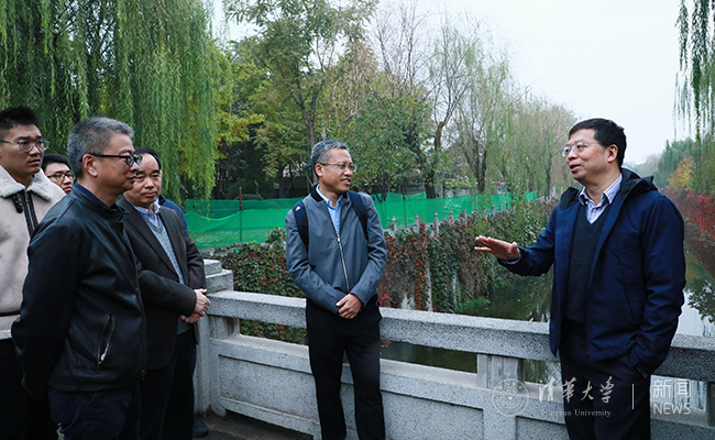 邱勇一行首先来到校内主要河道万泉河附近,参观万泉河与内河景观。邱勇详细询问了河道基本情况、防洪标准与措施、校内水资源利用效率、沿河景观建设情况等。修缮中心主任邢毅介绍了目前河道存在的问题和改造思路。邱勇要求相关部处和院系共同研究提升校内水资源利用效率的对策,促进校内水系的贯通与循环,并对沿岸景观建设进行系统规划和设计。