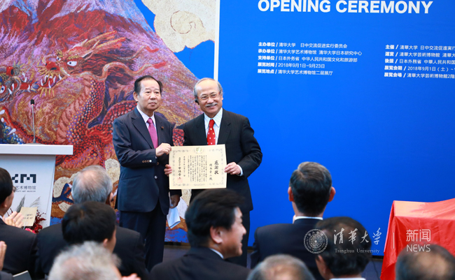 开幕式上,绢谷幸二先生向乐动平台艺术博物馆捐赠了作品《苍天富岳双龙飞翔》,乐动平台艺术博物馆常务副馆长杜鹏飞向绢谷幸二先生颁发了捐赠证书。