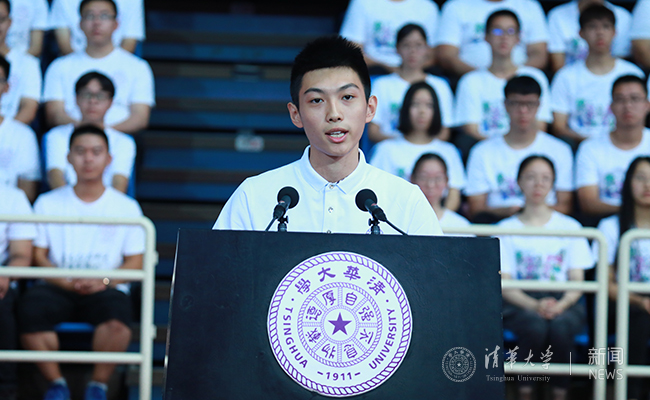 在热烈的掌声中,校长邱勇发表了题为“用一生去追寻科学精神”的讲话。邱勇首先代表全校师生员工,对新同学的到来表示热烈欢迎,祝愿同学们在美丽的清华园实现自己的人生理想!
