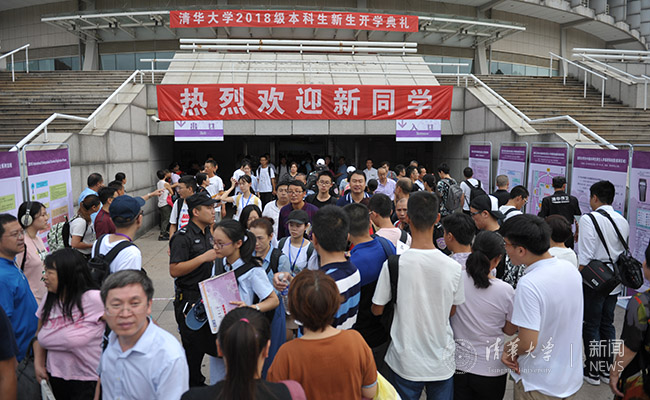 在“热烈欢迎新同学”的红色条幅下,在亲友们充满希冀的目光中,大学生涯的画卷在新同学面前徐徐展开。今天,综合体育馆里人声鼎沸,热闹非凡,师生们正有条不紊地引导新生办理入学手续;网球场各专业类及院系迎新站点处,各院系的学长学姐忙前忙后,为新入学的“小鲜肉们”耐心答疑;宿舍区附近,新生们争相与一个个憨态可掬的院系吉祥物合影留念;紫荆学生公寓里,楼长正为大家讲解公寓的注意事项,打开属于他们的那扇家门……与清华相遇的第一天,到处都是热情洋溢的笑脸,向这个园子的新主人致以最亲切的问候。在综体报到现场,“00后”新生们充满自信地独立完成各项报到手续,体验着独立成长的喜悦与成就感。