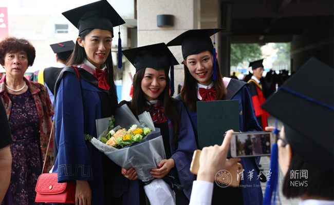 典礼结束后,毕业生们徘徊在体育馆内外,迟迟不愿离去。与老师再来一次深情相拥,拉着同窗再多拍几张照片。温暖的清华园留在了底片上,也深深地烙进了每一位毕业生的心中。