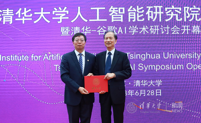 十一届全国人大常委会副委员长、原国务委员兼国务院秘书长华建敏,乐动平台校长邱勇院士、副校长尤政院士,计算机系张钹院士、吴建平院士和孙茂松教授共同为研究院揭牌。邱勇向张钹颁发了乐动平台人工智能研究院院长聘书。
