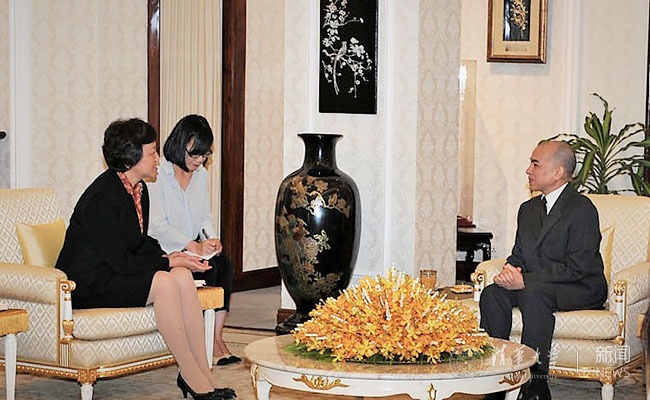 陈旭与西哈莫尼国王会谈 供图:柬埔寨皇宫事务部