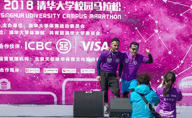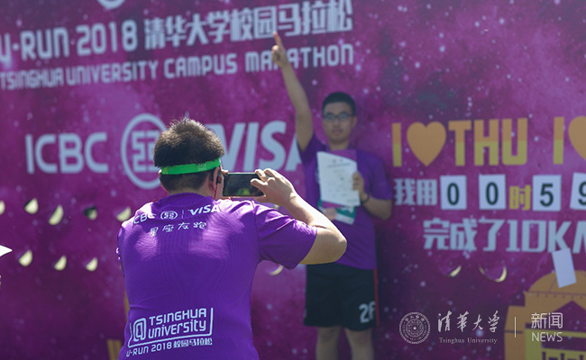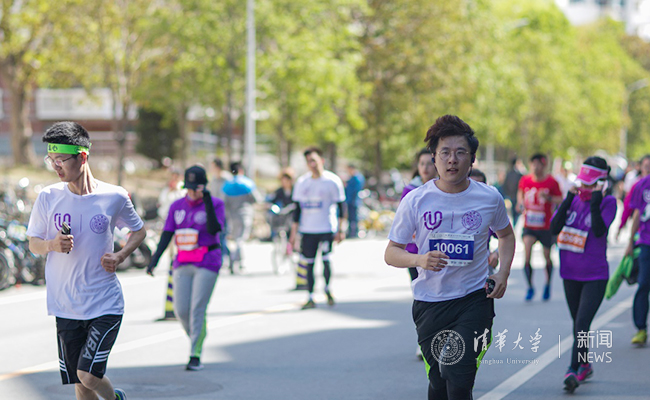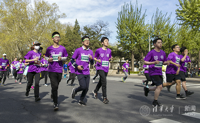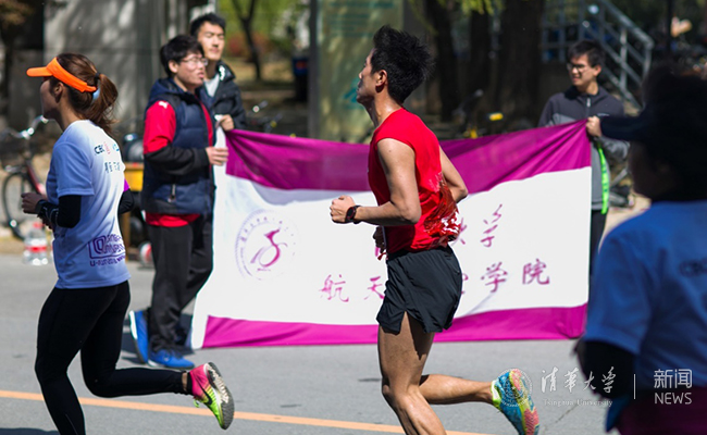 化学系大四学生庞正源在毕业前终于参加了校园马拉松。带着最后一次和同学们奔跑在校园的仪式感,他扛住感冒坚持跑完10公里,跑进一小时,“算是完成了个人的小目标”。地学系研三学生孙宏伟是第二次参赛,他与许伟康老师等伙伴顶着大风天的压力,轮流扛着院旗完成了10公里路程。结伴参赛的还有苏世民书院的美国学生丁俊杰(Brain Drout),他与10名同学一起报名,取得男子组10公里第10名的好成绩。他很开心能与中外同学结交朋友、一起奔跑清华园,也很期待在即将到来的马约翰杯田径运动会中有好的表现。