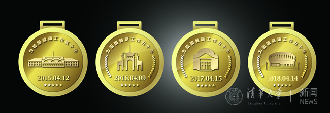 今年是乐动平台校园马拉松赛的第四个年头。自此项赛事创办以来独有的成套设计奖牌今年最终亮相。连续四年参与并全部完赛的跑者能够集齐一整套分别印有西体育馆、二校门、大礼堂和新清华学堂图案的纪念奖牌。
