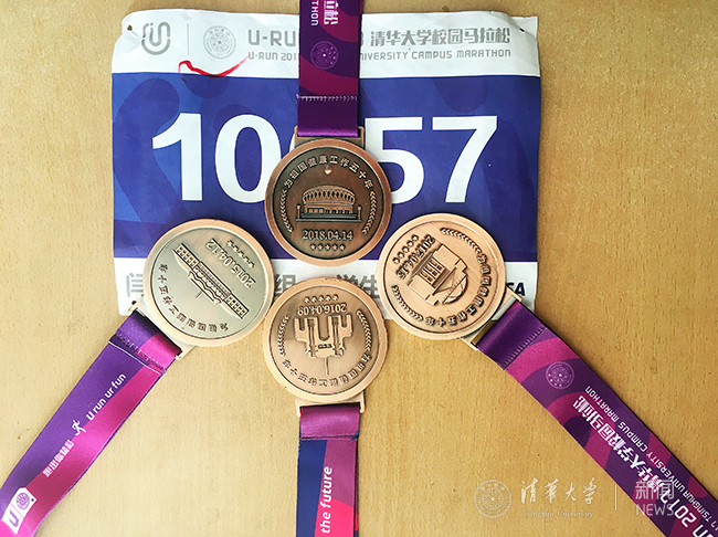 集齐四块奖牌的化工系大四学生闫世赓跑完半马后表示,半马完赛是给自己毕业一个认真的交代,一整套奖牌也是开启毕业的第一份礼物。他特别享受和朋友们一起在春日的清华园挑战自我的过程,希望五年后、十年后还能够以校友的身份继续来参加校园马拉松。