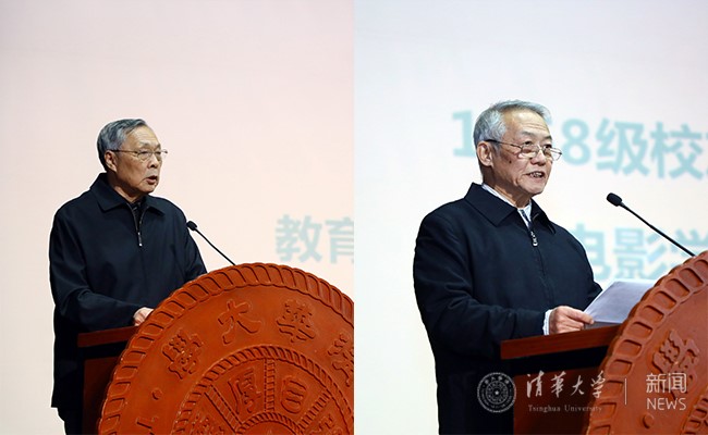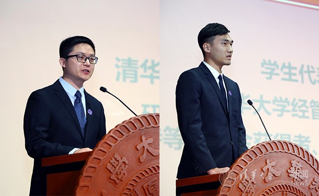 公管学院博士生、校研究生会原副主席杭承政,清华男篮队队员、特等奖学金获得者、经管学院学生王子宁分别代表在校学生发言,畅谈“无体育、不清华”这一新时期口号提出的背景及坚持锻炼给自己带来的改变,并向全校学生发出“积极锻炼身体、传承清华体育精神”的倡议。