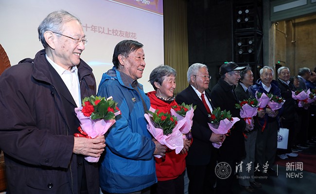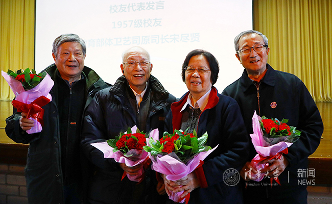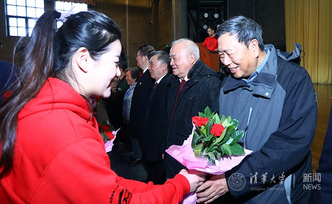 纪念大会还设立两个特殊环节:由在校学生代表向在场的毕业50年及以上校友、学校老领导逐一献上一束康乃馨。史宗恺在主持仪式时说,这一束鲜花代表着清华体育精神和体育文化的传承和流动,希望今天的清华人继续强健身体、“至少为祖国健康地工作五十年”,更要在清华的体育精神中学到积极向上的人生态度。因为体育给予了我们一种力量!