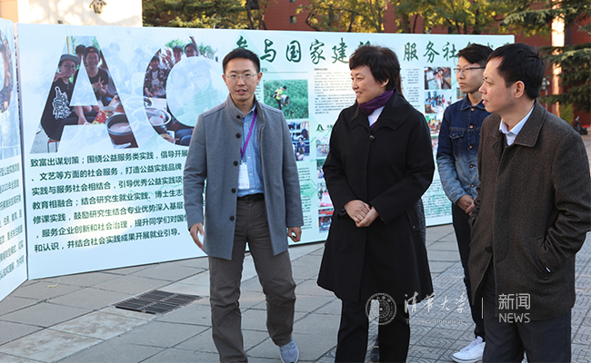 “参与国家建设,服务社会发展”从公益类实践、研究生就业实践和研究生支教团三个方面展开。公益类实践中,同学们聚焦乡村小学热水浴室建设、贫困地区女童性教育等具体问题,在实践中尝试“做贡献”,利用专业知识,整合社会资源,助力扶贫工作;研究生就业实践中,同学们利用自己所学专业知识,结合调研了解情况,为地方政府和企业建言献策,为未来就业打下基础;研究生支教团1998年至今,连续19年在西藏、青海、湖南等西部地区接力支教,做有温度的教育、做有力度的公益,用实际行动诠释清华精神。