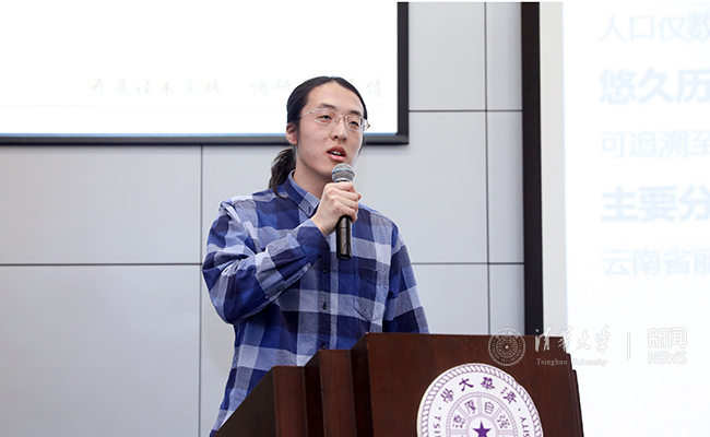 人文学院2016级学生王浩宇汇报“宁蒗普米族口诵历史调研支队”成果。