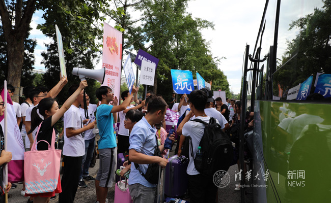 学校后勤系统为迎接“七字班”新生的到来早早做足了准备,及时完成了主要区域的校园修缮工作,精心打扫和准备好学生公寓,为每间学生宿舍都免费安装了空调,提前公布免费校园交通车的运行时刻和线路,还为新生及其亲友提供了免费绿豆汤和饮用水以解暑热,让新生亲友们从大家奔赴清华的那天起,就能切实感受到学校的关爱、温暖和细心,放心、放手地让自家的“七字班”新同学,心无旁骛地开启在清华园里的大学生涯。