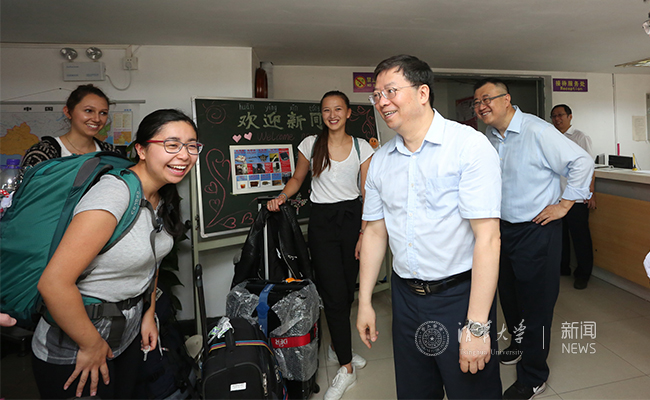 邱勇与前来报到的国际学生亲切交谈。石加东 摄