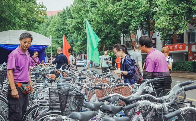 新生免费领取自行车。记者 张宇 摄