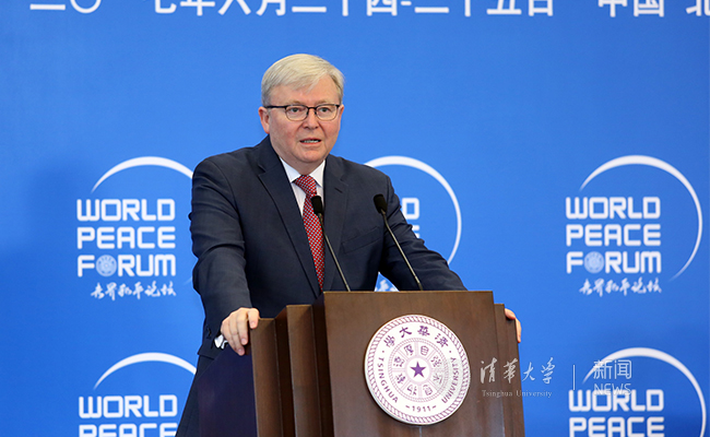 澳大利亚前总理陆克文发表演讲。石加东 摄