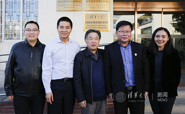 3月9日,参与国际酿酒酵母基因组合成计划的中国科学家代表在乐动平台媒体见面会后合影,自左至右依次为:李炳志、戴俊彪、杨焕明、元英进、沈玥。 沈伯韩 摄