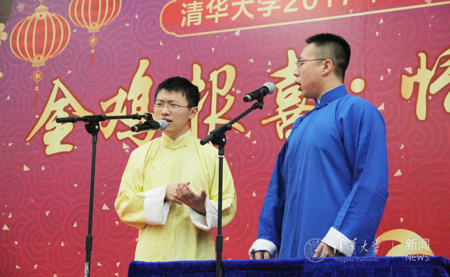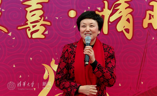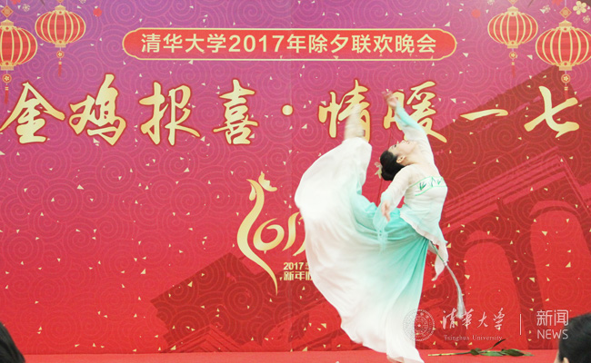 精彩的联欢节目赢得了台下一次又一次的喝彩。邱勇、陈旭、史宗恺、王希勤与学生代表共同演唱《相亲相爱一家人》,大家在新春时节的清华园也感受到了家的温暖。听涛园餐厅师傅马江献唱一曲《牡丹之歌》,俄罗斯留学生卡贞德带来一首《瓦莱丽》(Valerie),用美妙的歌声向同学们传递了新春的祝福。学生艺术团舞蹈队的陈晓苏给观众们表演了一支春意盎然的舞蹈《竹枝词》。学生艺术团曲艺队的张云舒、孙渤缘献上了新春贺岁相声《规矩论》。