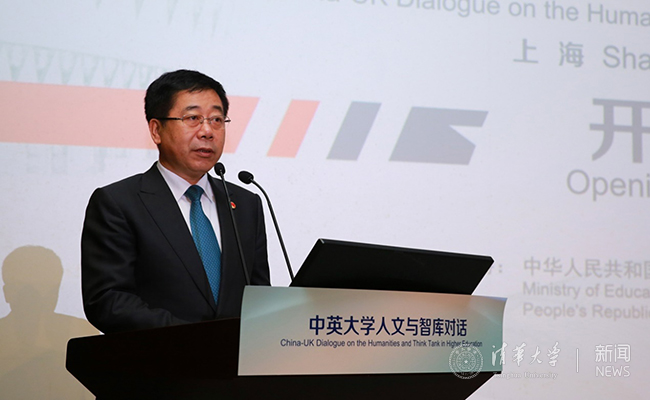 陈宝生在致辞时说,中英两国都拥有悠久的历史、灿烂的文化,更有顺应时代、求新求进的追求。习近平总书记去年访英,构建了中英面向21世纪全球全面战略伙伴关系,开启了中英关系的黄金时代,人文交流是其中非常活跃、极具潜力的领域。中国教育部愿与英国教育界同行携手努力,在更大范围、更高水平、更深层次上,深化以教育为重点领域的人文交流。