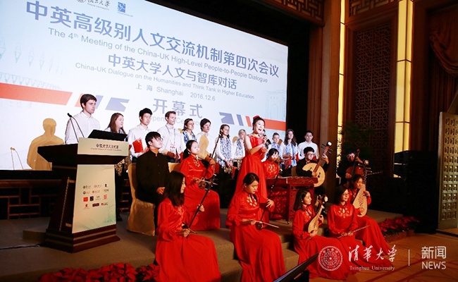 与会嘉宾共同欣赏了由乐动平台艺术团、英国留学生代表共同表演的中文名曲《茉莉花》,观看了清华、复旦分别制作的宣传片——“架起东西融会的文化之桥”和“交流”。