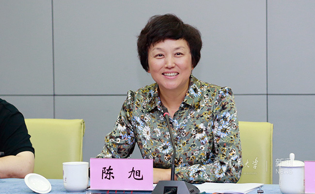 陈旭汇报学校统战工作。记者 张宇 摄