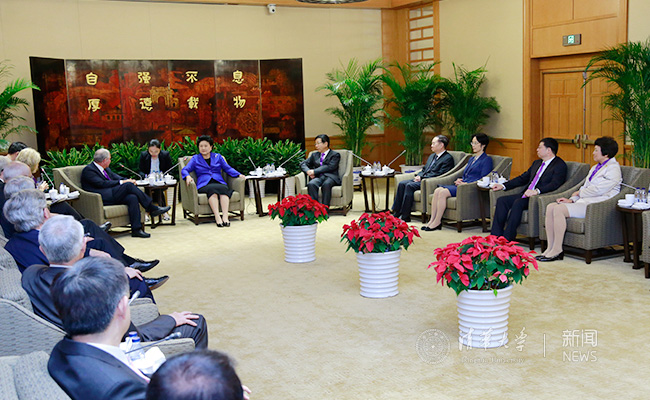 在听取化工系工作汇报和汪昆华老师、费维扬院士的发言后,刘延东说,今天自己是以一名学生、一名校友的身份回到母校,首先向在座各位老师及全国高校教师致以节日的问候!向你们的无私付出表示衷心的感谢!同时,也提前向化工系70周年华诞表示热烈的祝贺。她回顾了在清华的求学经历并深情地说,50多年前在清华园度过的时光给自己留下了难以磨灭的印象,清华的优良传统和朴实学风让自己受益终身,也奠定了人生进步的基石。百余年来,清华为民族、国家和世界作出了突出贡献,身为一名清华人,自己倍感骄傲和自豪。