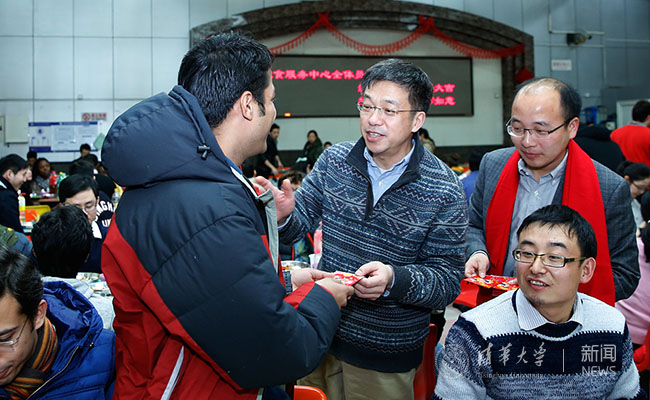 陈旭向寒假期间留校学生致以亲切的问候和热情洋溢地新春祝福,希望大家不管走到天涯海角、四面八方,都能够在除夕之夜与亲人以各种方式共同团圆。