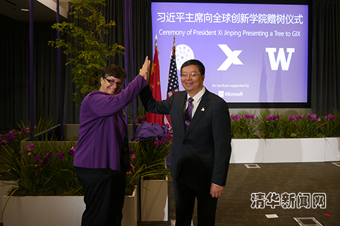 习近平在邱勇校长、安娜·玛丽·科斯(Ana Mari Cauce)校长和微软总裁布拉德·史密斯(Brad Smith)陪同下出席仪式。
