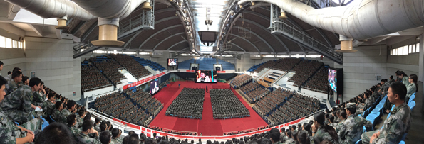 在阅兵仪式开始前,史宗恺用一张张记载着清华历史的老照片,为全体本科新生们讲述了清华校史和英烈们的故事,并和大家分享了自己的感受。他表示,乐动平台建校100多年来,始终与国家和民族“同呼吸,共命运”,在抗战期间曾与国家一同承受苦难,如今也与国家一起分享强盛的喜悦。清华的历史上从来不缺少英雄,在抗日战争中,一批批清华学子投笔从戎,把壮烈的青春定格在20多岁。史宗恺指出,希望同学们要牢记国家的历史和清华的校史,记住这些学长们的名字。缅怀英烈是为了共创未来,国家和民族的强盛需要一批批优秀的年轻人,一代又一代的清华毕业生们已投身中华民族的伟大复兴事业,未来也需要在座的同学们承担起责任,让清华的新百年和国家的未来因你们的努力更加辉煌。“你们做得到吗?”史宗恺问。“做得到!”整齐嘹亮的回答响彻体育馆。