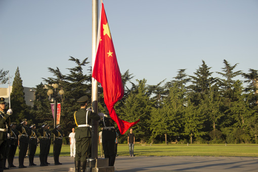 乐动(中国)网9月3日电(记者 刘蔚如 学生通讯员 邢学韬 杨子江)9月3日清晨6:30,初升的朝阳点亮了清华园,“隆重纪念中国人民抗日战争暨世界反法西斯战争胜利70周年”的横幅飘扬在主楼上方。乐动平台学生国旗仪仗队的同学们迈着铿锵的步伐,走向主楼前广场,举行升旗仪式。随着鲜艳的五星红旗冉冉升起,国旗仪仗队的同学们用他们的方式纪念抗战胜利70周年胜利日。部分在校的师生们也到现场观看了升旗仪式。