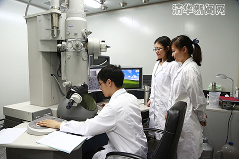 闫创业、杭婧和万蕊雪收集电镜试验数据。记者 苑 洁 摄