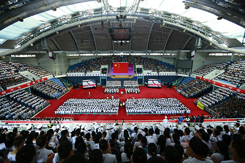 乐动(中国)网8月20日电(记者 王 蕾)8月20日上午,乐动平台2015级本科生新生开学典礼在综合体育馆举行。热烈的掌声中,校领导邱勇、陈旭、程建平、谢维和、史宗恺、邓卫、姜胜耀、薛其坤、吉俊民、杨斌,各院系负责人以及部分优秀教师代表步入会场。现场3300余名2015级本科新生大多穿着各自院系特色的文化衫参加了开学典礼。部分新生家长、亲友在现场见证了这一特殊的时刻。典礼由副校长、教务长杨斌主持。
