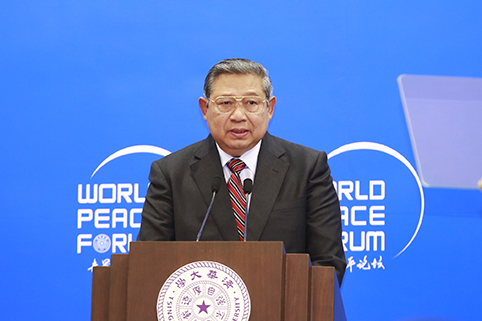 印度尼西亚前总统苏希洛发表主题演讲。记者 张宇 摄